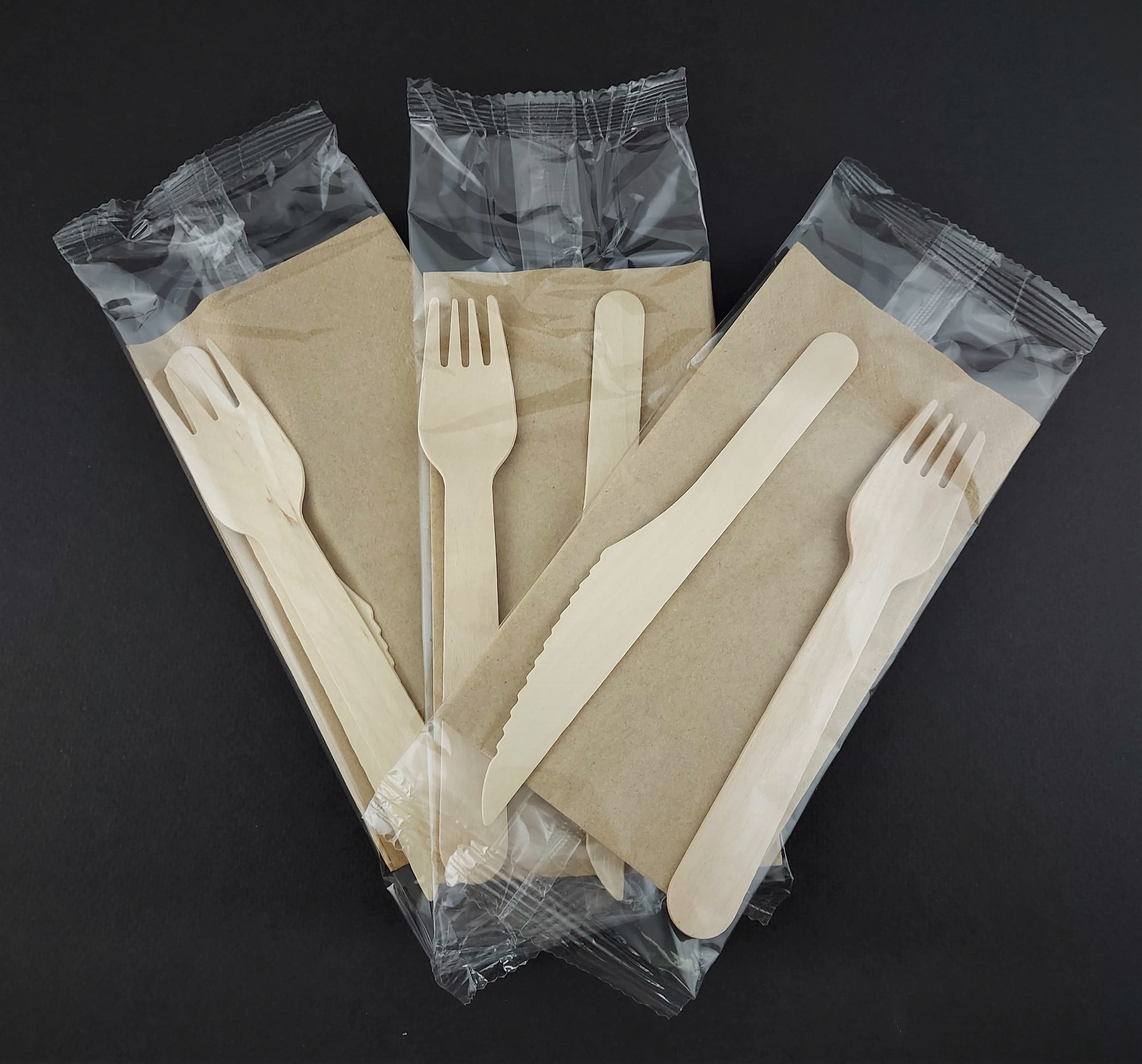 Wooden Knife Fork Kraft Napkin Set 33×33 100pcs