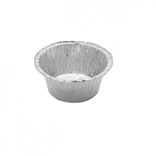 Description: ALUMINUM CONTAINER S1 (C1G), 100 pcs. Small round aluminum container for mini cakes, muffins, or soufflés. • Outer diameter: 86mm. • Height: 38mm. • Capacity: 130ml.