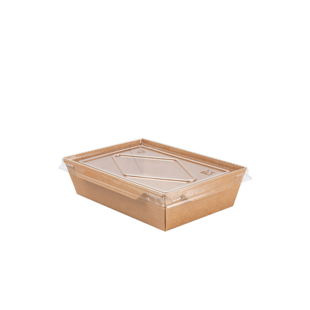 900CC Kraft Rectangular Food Container, 15×11.6×4.8, with RPET Lid, 50 pcs