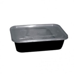 Black Rectangular Microwave Container with Clear Lid, 500ml, 50 pcs