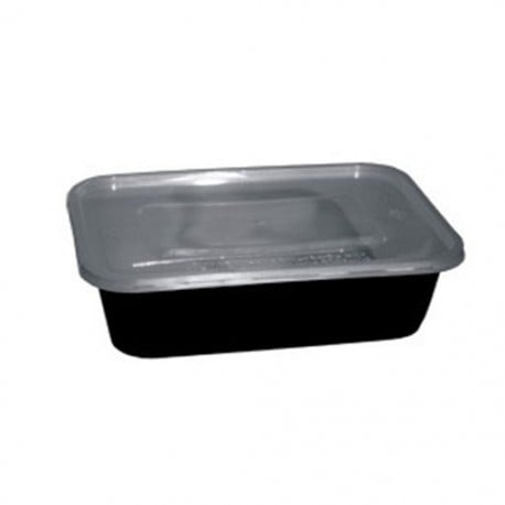 Rectangular Black Microwave Container with Transparent Lid, 750ml, 50 pcs