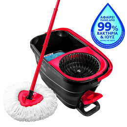 Κατοχυρωμένος βιομηχανικός σχεδιασμός EUIPO Registered Design. Με επαναστατικό σχεδιασμό έτσι ώστε στον έναν κουβά να διατηρείται το νερό σας καθαρό , ενώ στον άλλο να απομακρύνεται το νερό από τη σφουγγαρίστρα . Με ρόδες για ξεκούραστο σφουγγάρισμα . Μπορείτε να χρησιμοποιήσετε σφουγγαρίστρες όλων των μεγεθών. Στίφτης ενισχυμένος που κουμπώνει και ασφαλίζει χωρίς να βγαίνει μετά από κάθε στύψιμο. Διπλή ροή για ταυτόχρονο άδειασμα και των δύο μερών.