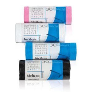 Σακουλάκια καλαθιών 30 τεμαχίων . Διαστάσεις: 46x56cm  Χωρητικότητα: 25 Λίτρα  Χρησιμοποιούνται σε καλαθάκια μπάνιου, γραφείου και μικρούς κάδους . Υψηλής ανθεκτικότητας σακούλες απορριμμάτων , κατάλληλες για επαγγελματική και οικιακή χρήση. Ιδανικές για ξενεδοχεία και καταλύματα.