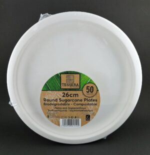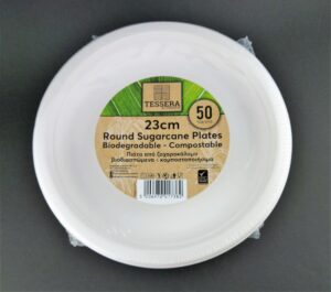 Στρογγυλό πιάτο από ζαχαροκάλαμο με διάμετρο Ø 23 cm σε λευκό χρώμα βιοδιασπώμενο και κομποστοποιήσιμο. Αποτελεί ιδανική λύση για την αντικατάσταση των αντίστοιχων πλαστικών πιάτων μίας χρήσης. Ανθεκτικό σε χαμηλές και υψηλές θερμοκρασίες. Κατάλληλο για κατάψυξη και φούρνους μικροκυμάτων, για κρύα και ζεστά τρόφιμα. Ελαφρύ και ταυτόχρονα στιβαρό. Απαραίτητο για κάθε επαγγελματία της εστίασης σε εστιατόρια, ψητoπωλεία, ξενοδοχεία, fast food, υπηρεσίες catering, για σερβίρισμα σε events και festivals. Χρησιμοποιείστε τα όμορφα αυτά TESSERA bio products® στρογγυλά  πιάτα από ζαχαροκάλαμο, για να σερβίρετε  γευστικά ορεκτικά, απολαυστικά finger foods, λαχταριστά γλυκά, επιδόρπια και φρέσκα φρούτα. Συνδυάστε τα με τις πιατέλες από ζαχαροκάλαμο και δημιουργείστε όμορφα και φιλικά προς το περιβάλλον σερβίτσια μίας χρήσης.
