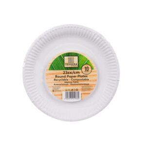 Πιάτο χάρτινο, στρογγυλό, Ø 23 cm, λευκό, βιοδιασπώμενο, κομποστοποιήσιμο και ανακυκλώσιμο. Χωρίς επίστρωση πλαστικής μεμβράνης. Ένα #plasticfree προϊόν φιλικό προς το περιβάλλον, πλήρως προσαρμοσμένο στις νομοθετικές απαιτήσεις της Ε.Ε. για την προστασία του περιβάλλοντος. Αποτελεί ιδανική λύση για την αντικατάσταση των αντίστοιχων πλαστικών πιάτων μίας χρήσης. Απαραίτητο για όλους τους επαγγελματίες της εστίασης για χρήση σε εστιατόρια, ξενοδοχεία, beach bars, ταχυφαγεία, υπηρεσίες catering, αλλά και για το σπίτι, σε εκδηλώσεις, παιδικά parties, barbeque και για κάθε οικογενειακή στιγμή και φιλική συγκέντρωση.