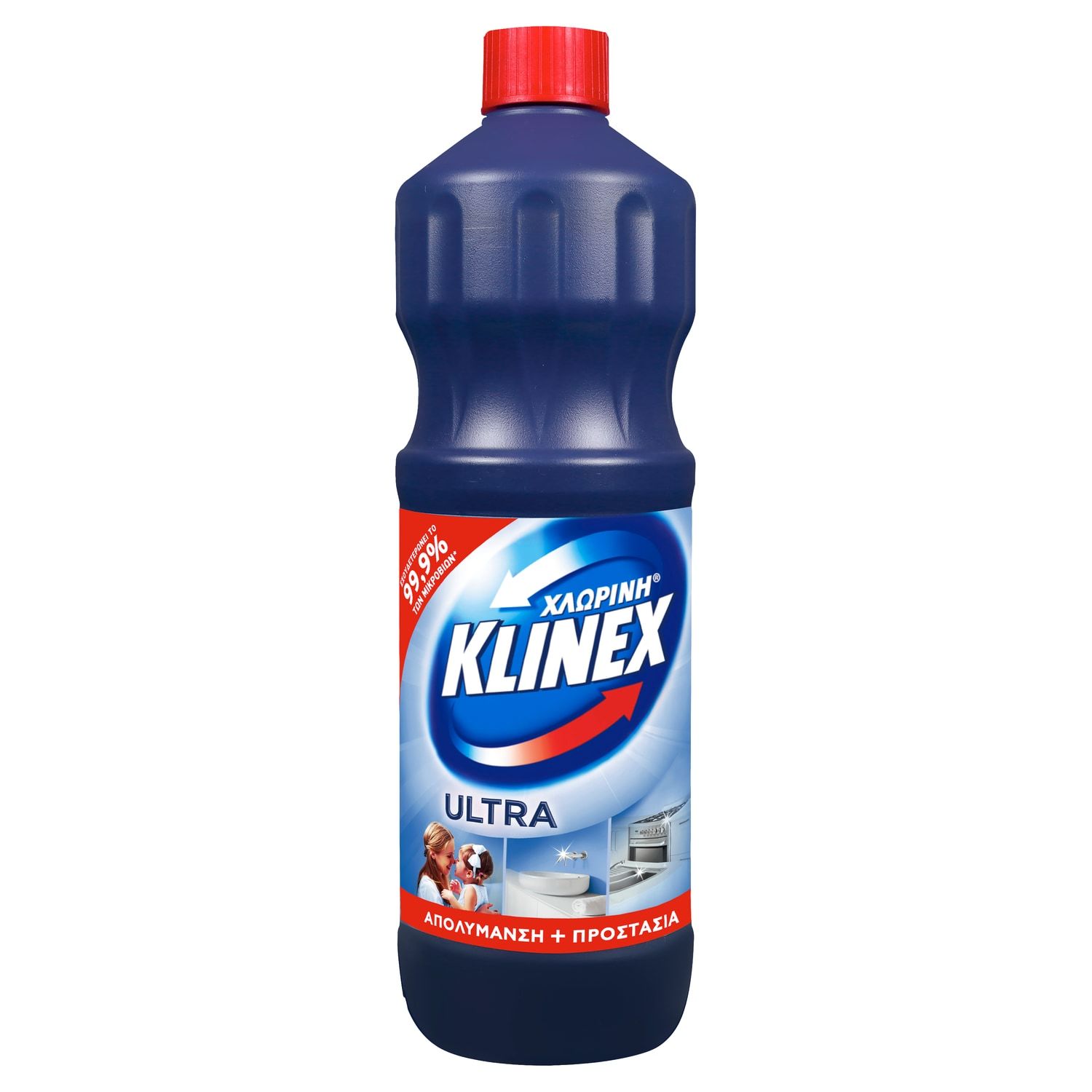 Η Χλωρίνη® Klinex Ultra με παχύρευστη σύνθεση απολυμαίνει επιφάνειες σε όλο το σπίτι και προστατεύει την οικογένεια σας εξουδετερώνοντας το 99,9% των μικροβίων! Πιο συγκεκριμένα, εξουδετερώνει: * Βακτήρια: Σταφυλόκοκκο, Σαλμονέλα, Εντερόκοκκο, E. Coli, Ψευδομονάδα αεριογόνο. * Ιούς: Αδενοϊό τύπου 5, Πολιομυελίτιδα τύπου 1, Ιό γρίπης Η1Ν1 (τύπου Α), Νοροϊό. * Μύκητες: Μούχλα και Σπόρια βακτηρίων. Χάρη στη μοναδική και κατοχυρωμένη τεχνολογία C-TAC, προσκολλάται και δρα αποτελεσματικά και σε κάθετες επιφάνειες. Η Χλωρίνη® Klinex Ultra είναι ο πιο αποτελεσματικός τρόπος να σπάσετε την αλυσίδα μετάδοση μικροβίων! *Βάσει πρότυπων τεστ ΕΝ.
