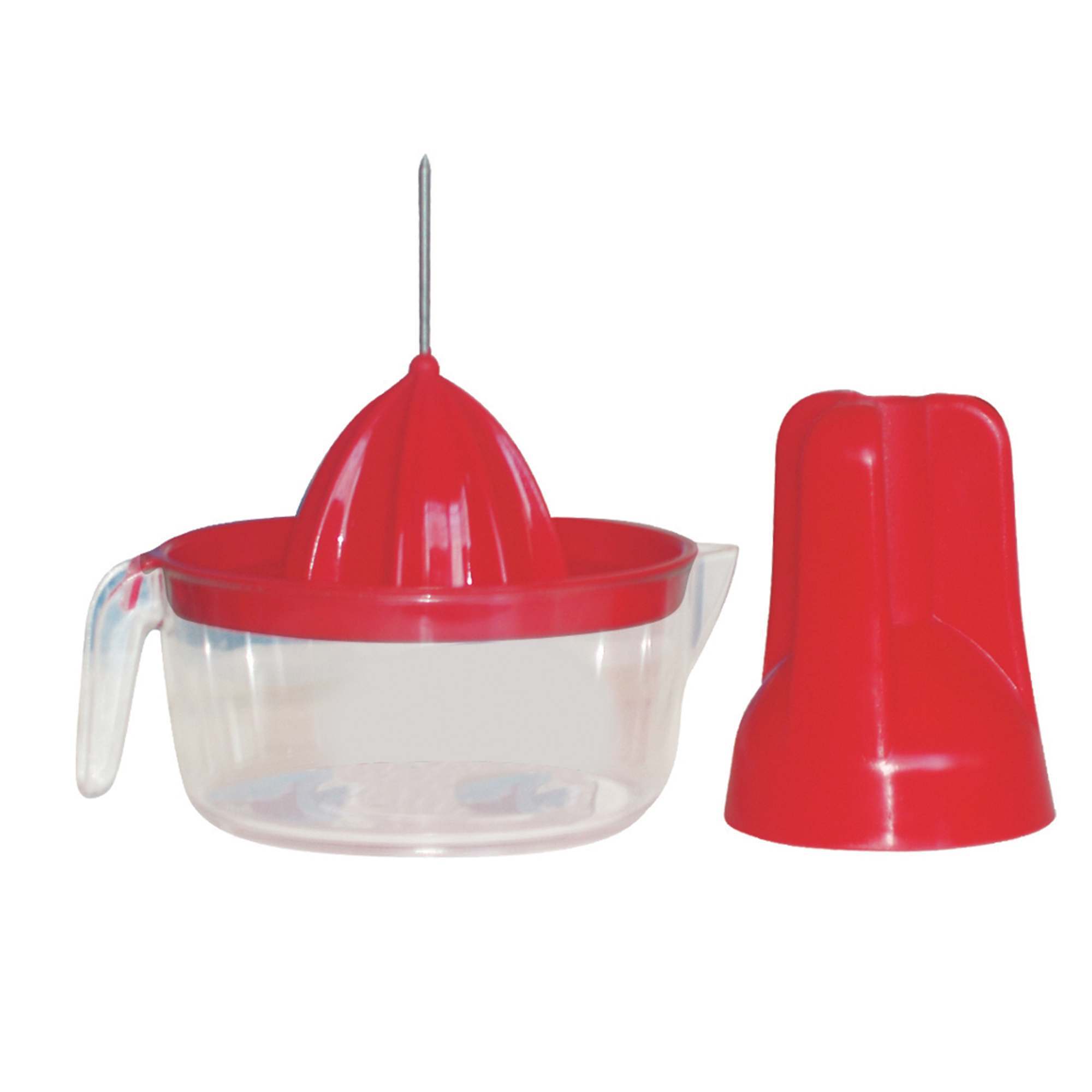 Με την τοποθέτηση του φρούτου στο καρφί και στο πλαστικό καπάκι, πετυχαίνετε με ευκολία το αποτελεσματικό στύψιμο του φρούτου.