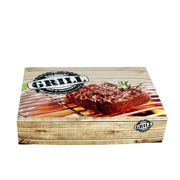 Xάρτινα, τυπωμένα κουτιά με μότο: «GRILL», ιδανικά για τοποθέτηση μισής μερίδας φαγητού.