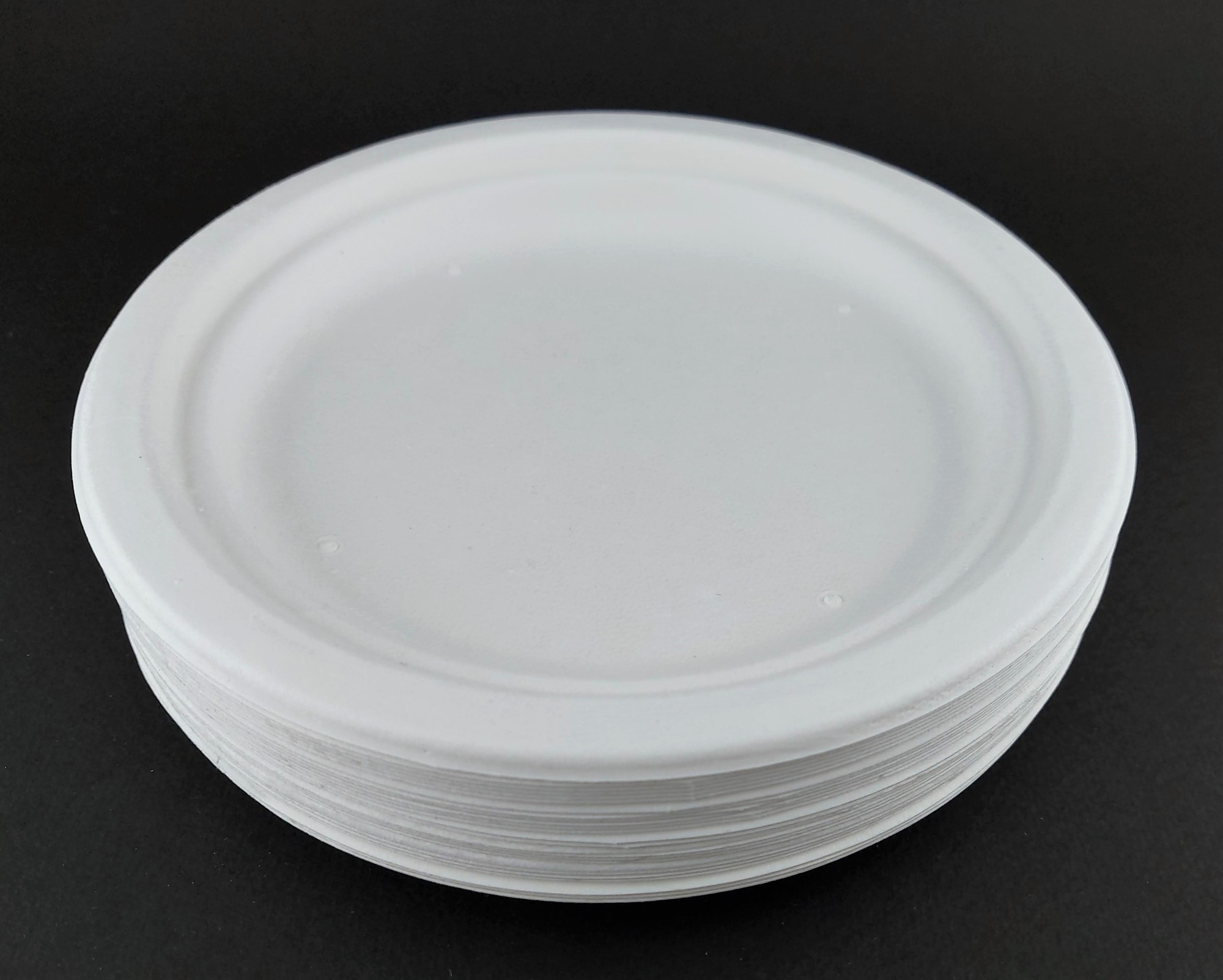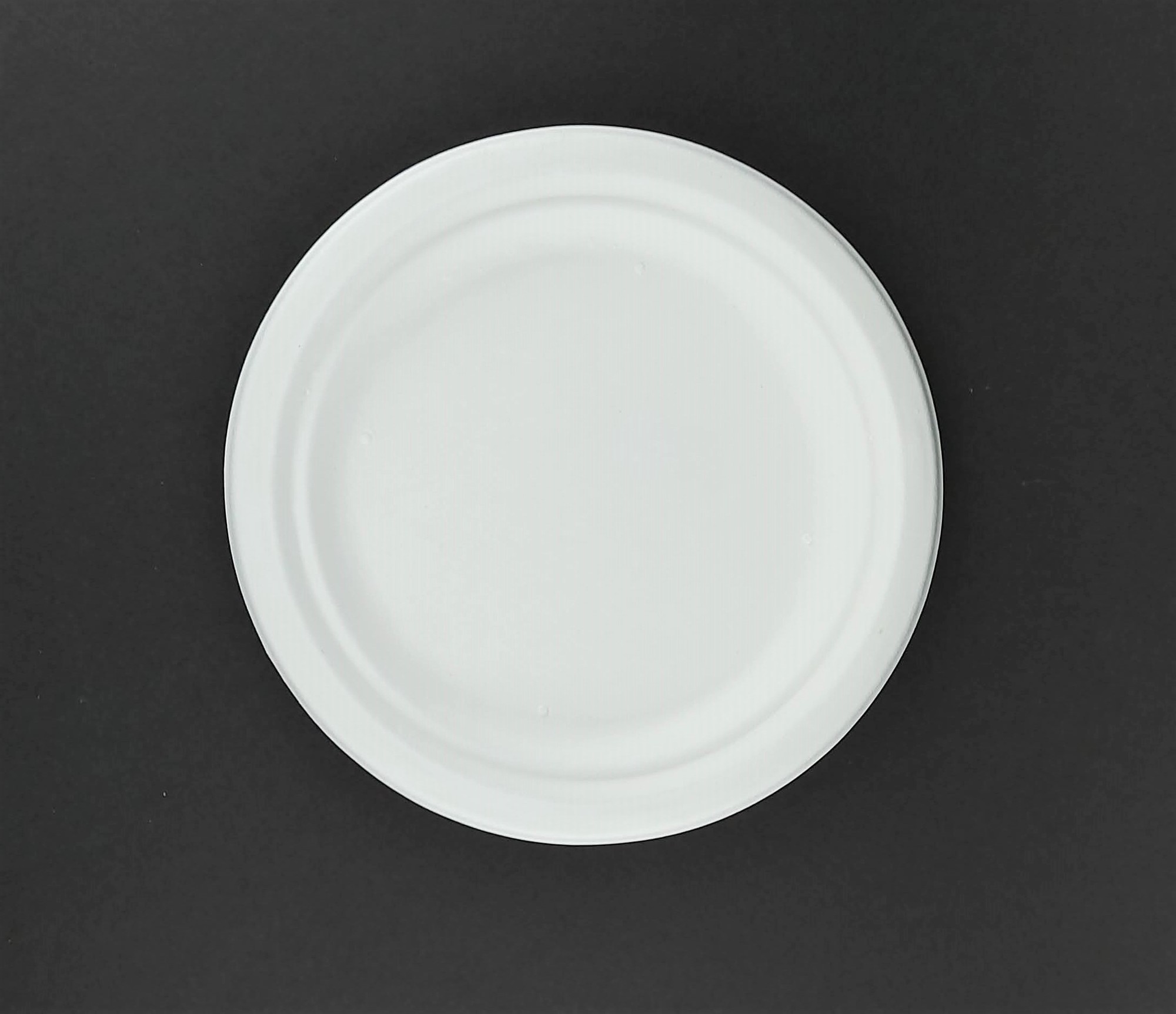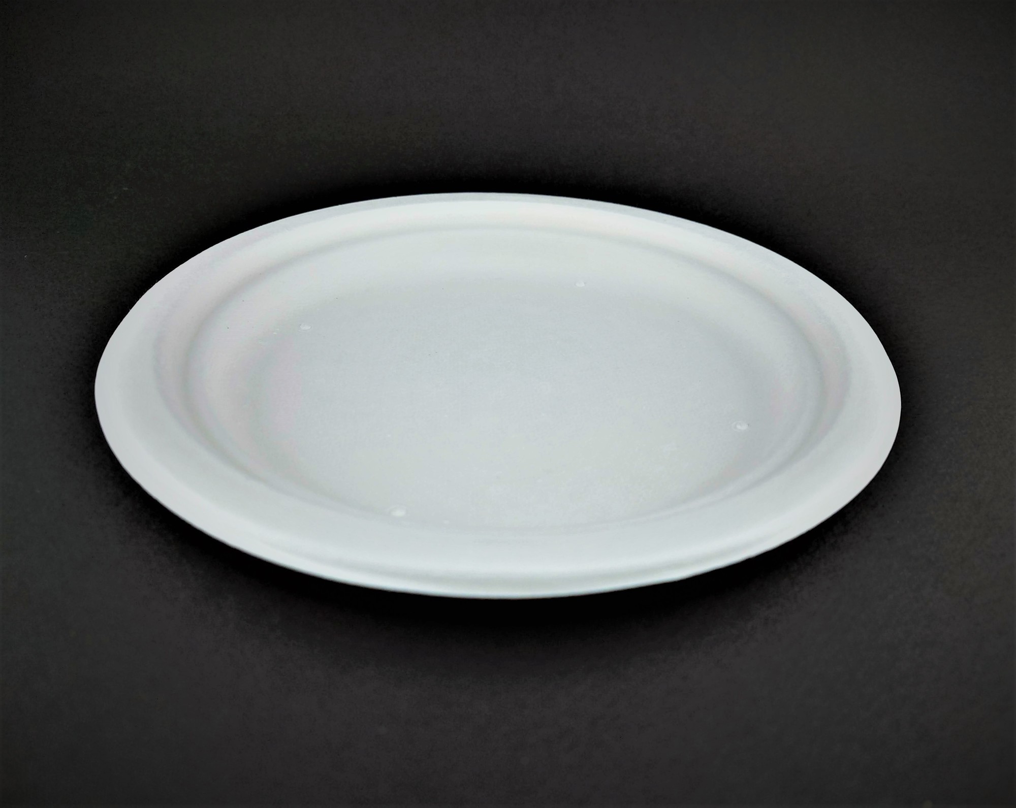 Στρογγυλό πιάτο από ζαχαροκάλαμο με διάμετρο Ø 23 cm σε λευκό χρώμα βιοδιασπώμενο και κομποστοποιήσιμο.